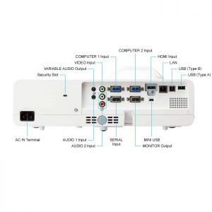 Cổng tín hiệu vào:HDMI, S-Video, Audio, 2 x VGA, RJ-45, USB, Mini USB